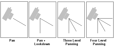 4 level panning (adjustable declinations ie 0°, 30°, 60° & 90°)