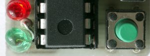 its tiny yet easy interface uses a single push-button switch and two coloured leds (see below)